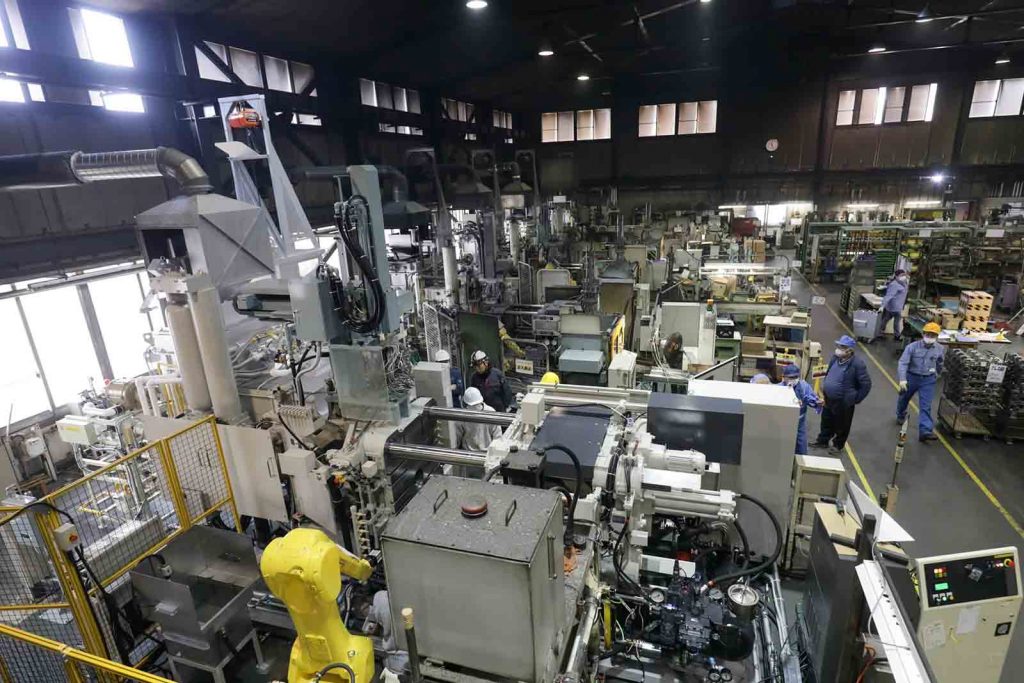 日々の改善力と、受注時の提案力。ここにさらなる強みを加えるべく、メックは次なる展開に動き出した。まずは2021年、3億円規模の融資を受け、ダイカストマシン350トンを増設し、プレスの自動化を実現。これにより、高精度な自動車部品の生産量が飛躍的に向上した。
